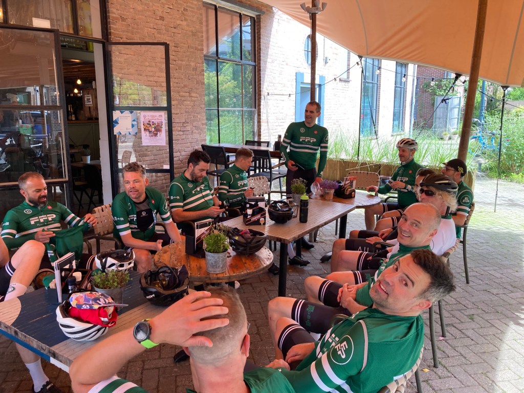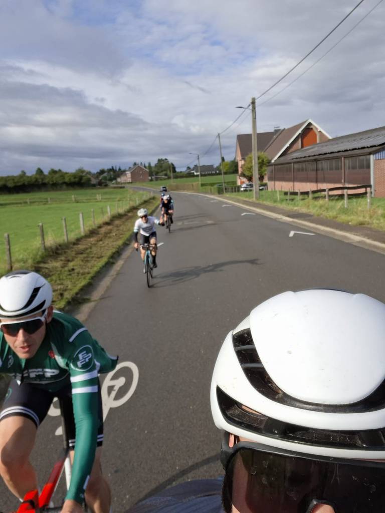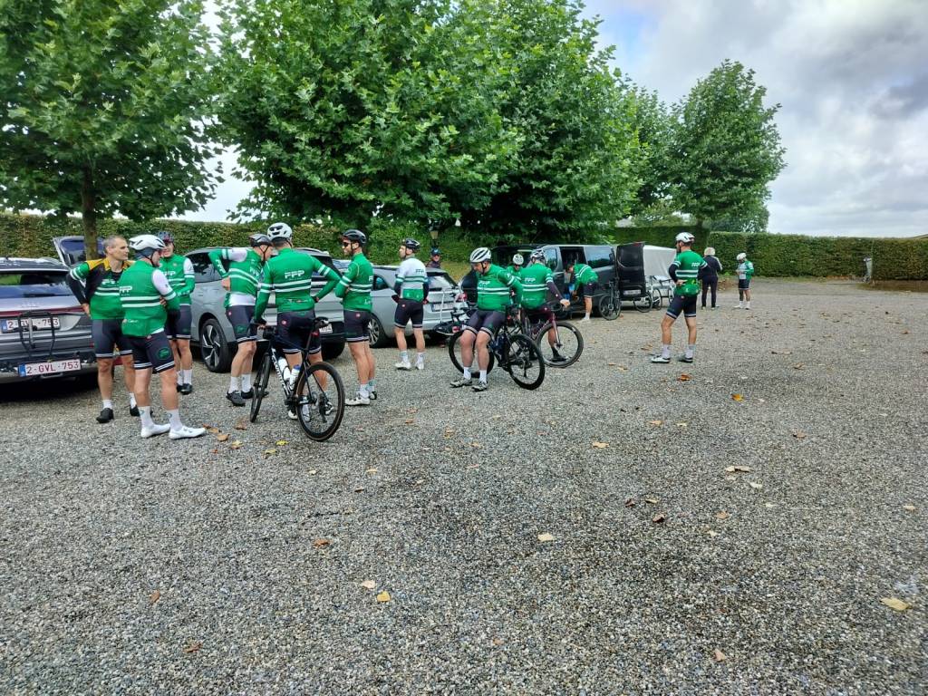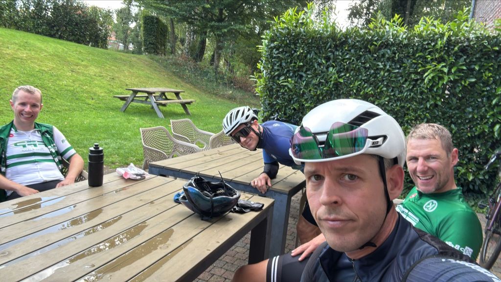 De regenbui blijft ons een beetje achtervolgen, wat weegt op de gemoedstoestand van sommigen. Flashbacks naar 3 jaar geleden waar we allen als verzopen katten rondfietsten, werden een gespreksonderwerp.