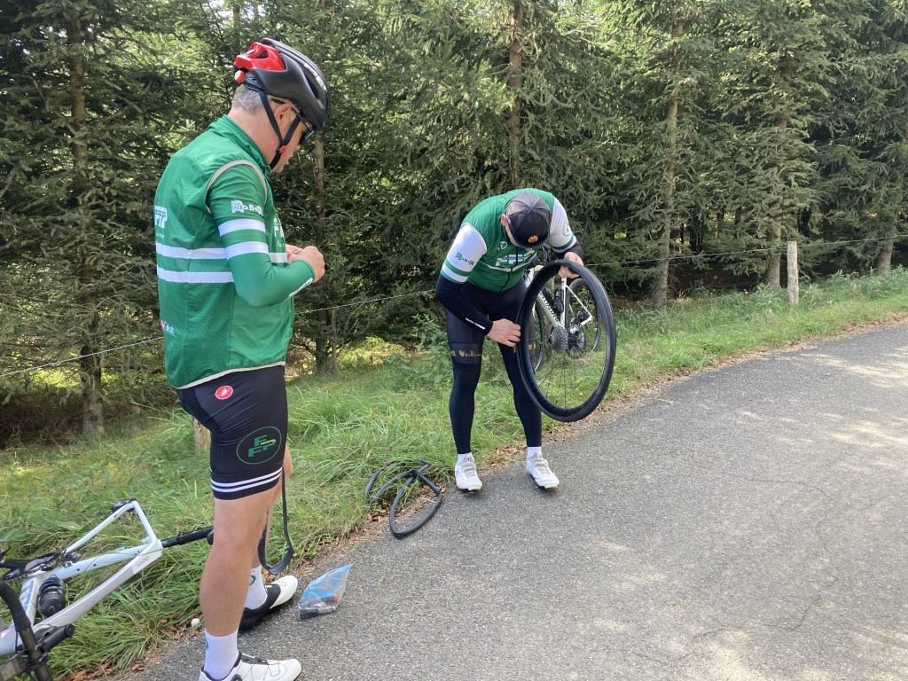 Een andere Klepper koos er dan weer voor om deze competitie aan zich te laten voorbij gaan. Bij hem deed de tubeless melk zijn werk, zelfs in die mate dat de arme man naast hem getrakteerd werd op een douche.