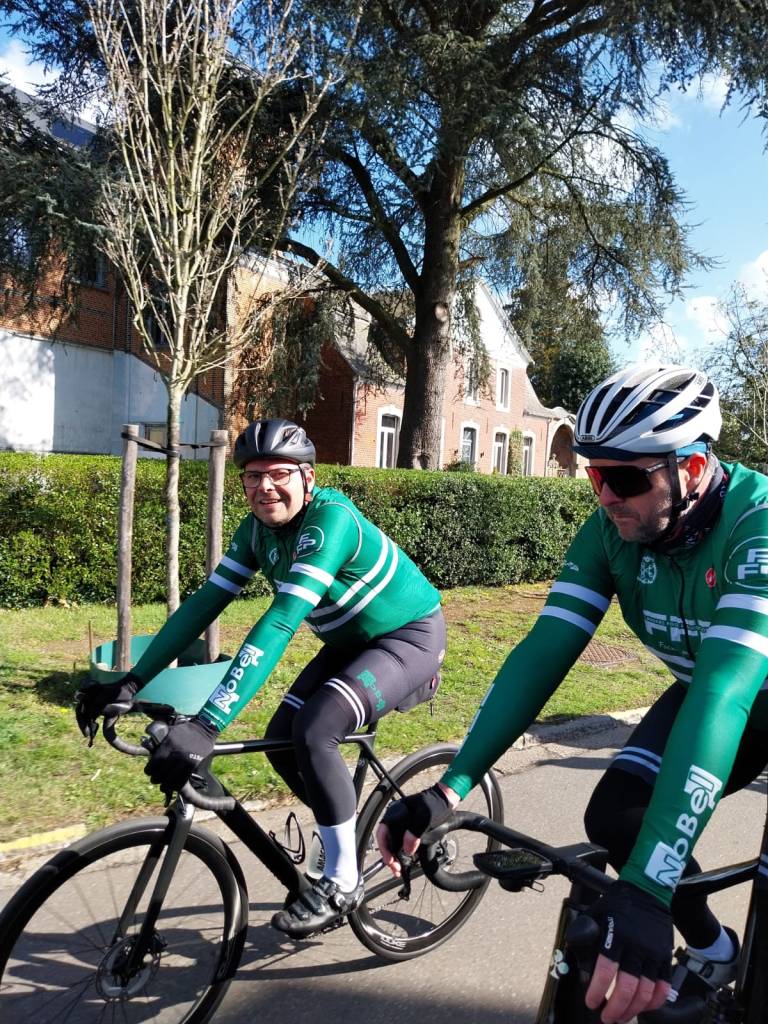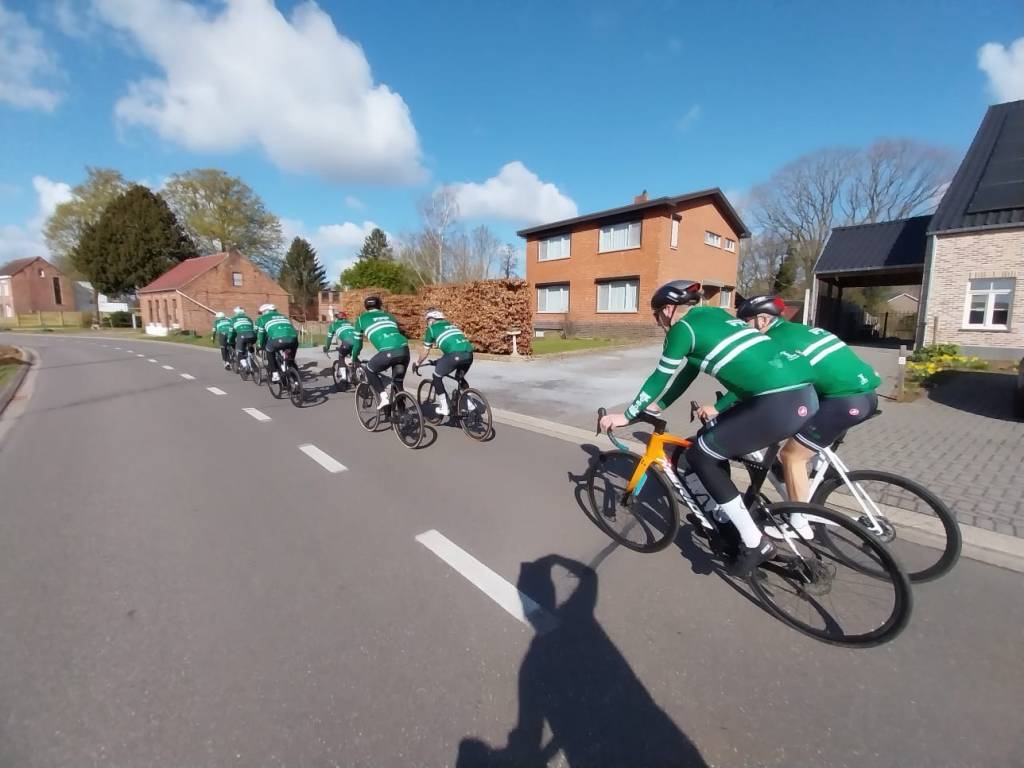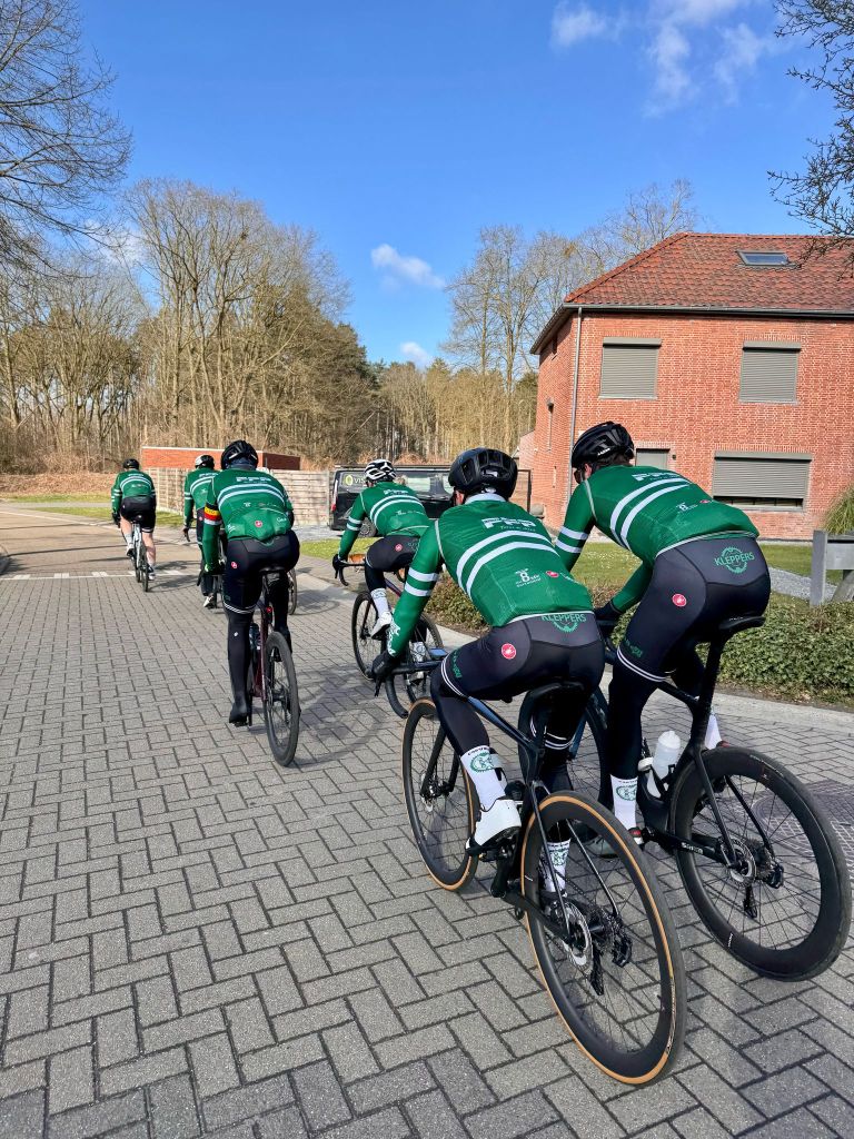Na de gebruikelijke groepsfoto en een woordje van de voorzitter werd in 2 groepen koers gezet richting Koersel. Een mooi lentezonnetje, droge wegen en wind in de rug: perfecte omstandigheden die meteen de toon zetten voor hopelijk weer een geslaagd seizoen!