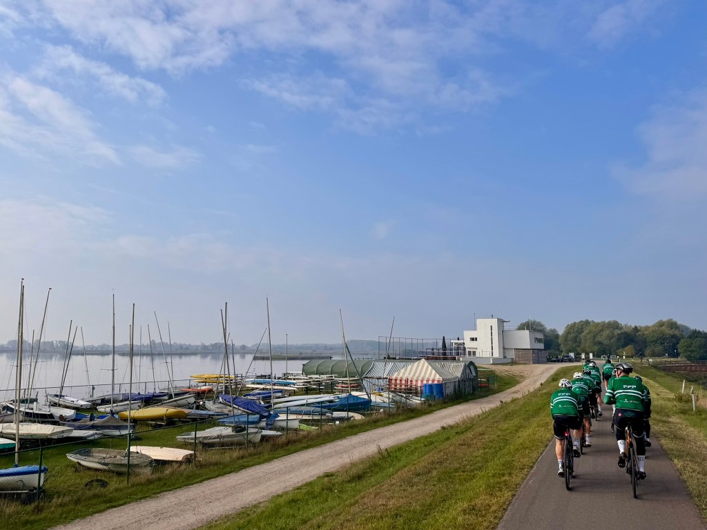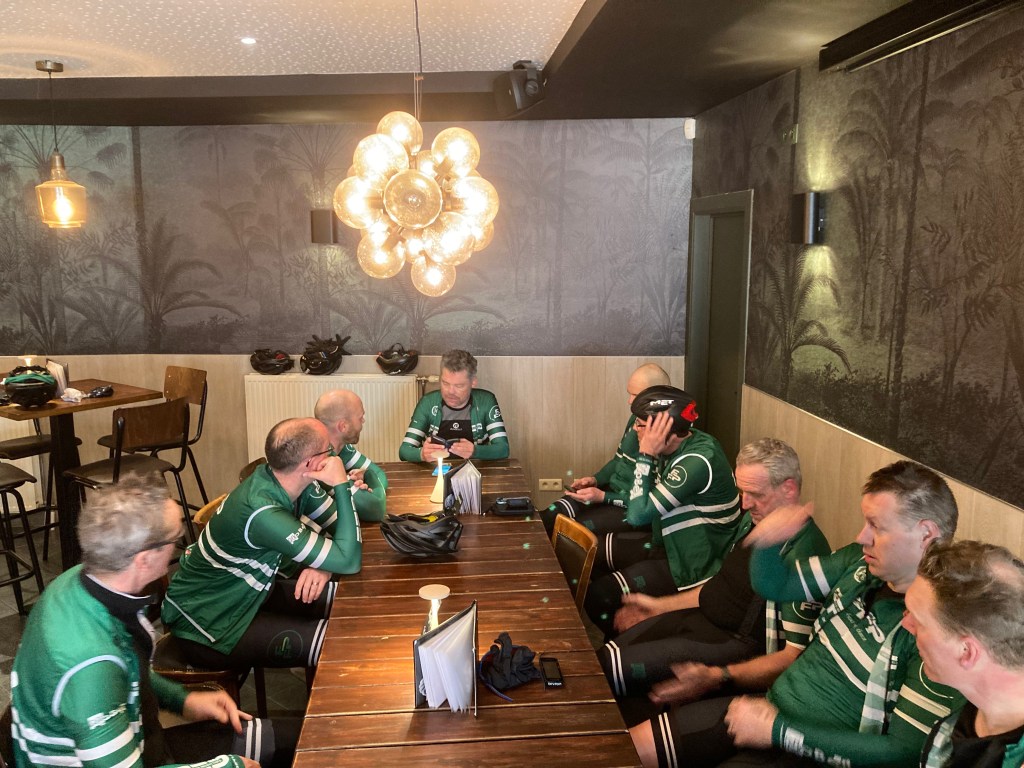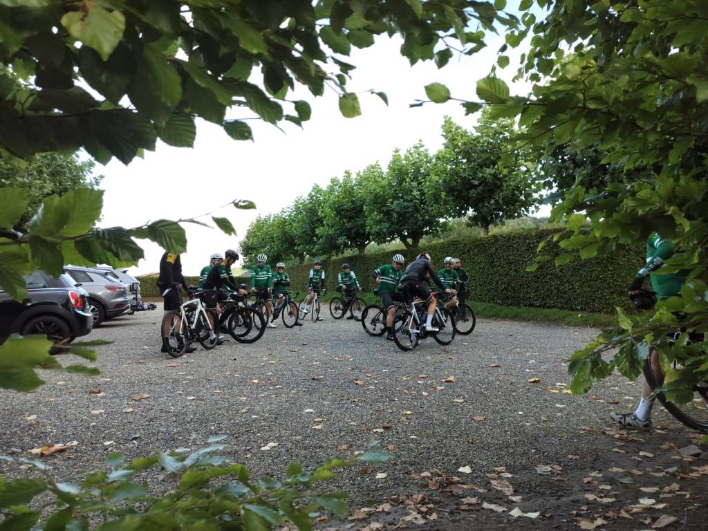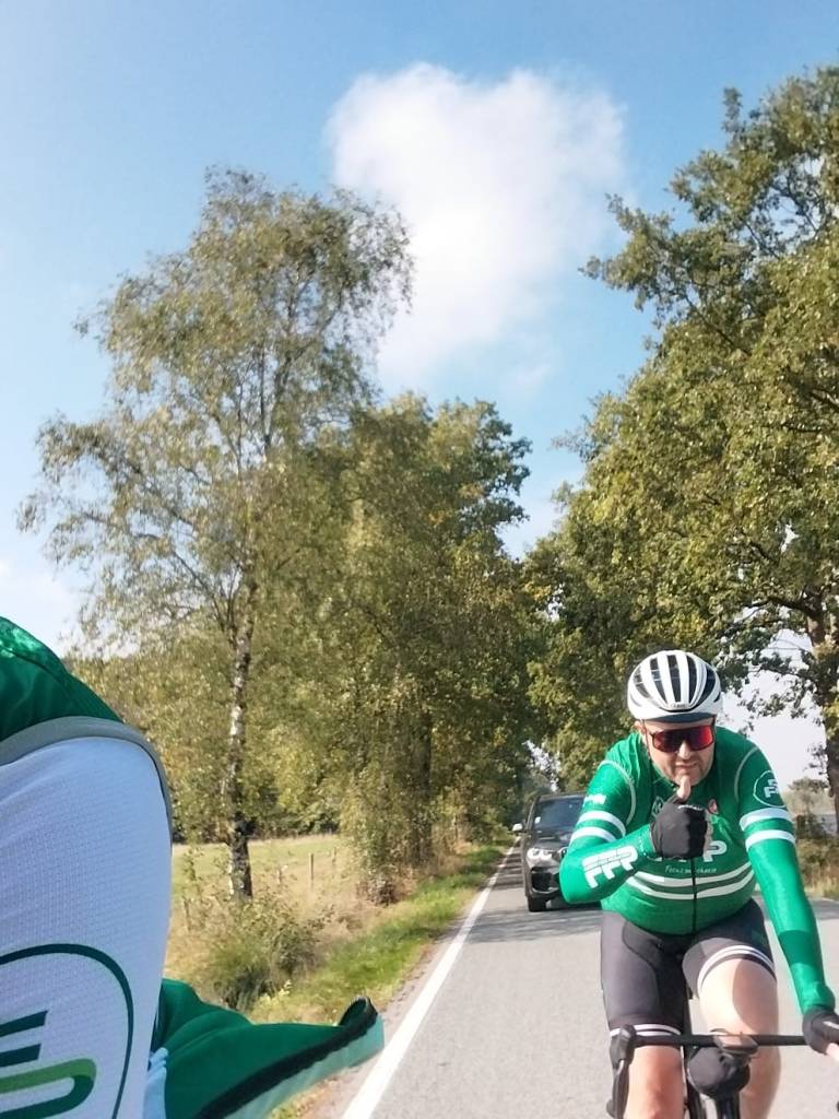 Met het weekend achter de rug en de herfst voor de deur is het traditiegetrouw weer tijd voor de slotrit. Ondanks dat het weerbericht een melancholische herfstzon aankondigde, doemden er toch een aantal regenbuien op. Geen buien die onze gerespecteerde voorzitter inspireerde een rechtsomkeer te maken , maar van een andere soort. Helaas klonk onze groepsapp de dagen voor de rit als een afzegconcert met concerto’s gedirigeerd door het grote boek der excuses. Dit weerhield 14 kleppers er echter niet van om er toch vol voor te gaan. 14!? Nee toch niet, 13 want helaas draaide er nog een collega zijn jas (en dat gebeurt blijkbaar wel eens vaker).