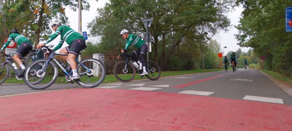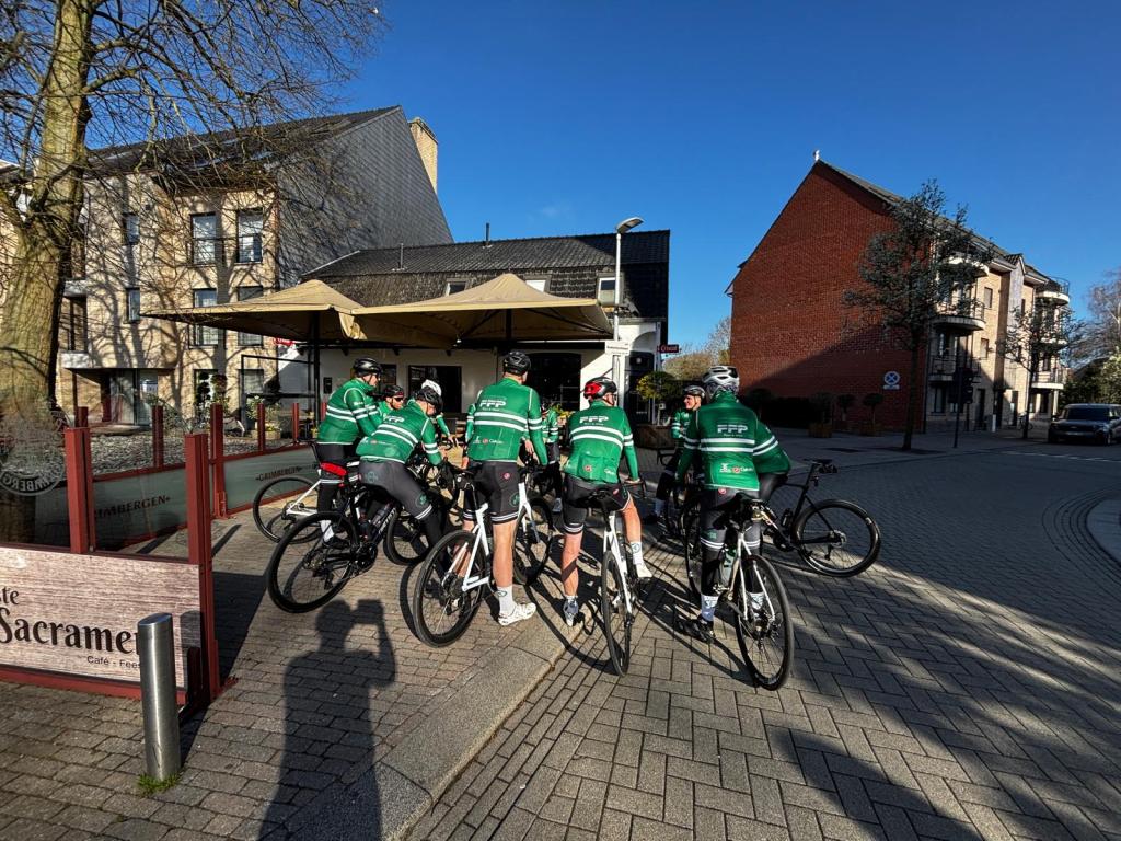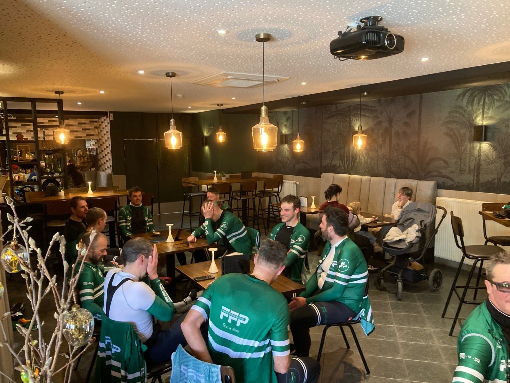 Op de terugweg en met de wind in het nadeel werd meteen duidelijk wie niet had stil gezeten deze winter en dat velen bezig zijn met hogere doelen later dit jaar. De alarmbellen gingen volledig af toen de ene groep de andere in het vizier kreeg. In gestrekte draf werden de laatste kilometers richting het 8ste Sacrament aangevat, waar we door de club werden getrakteerd op een middagmaal en enkele drankjes en waar zoals steeds gezellig werd nagekaart en vooruit gekeken naar wat komen gaat.