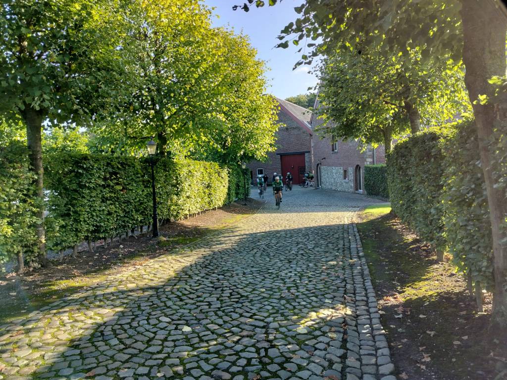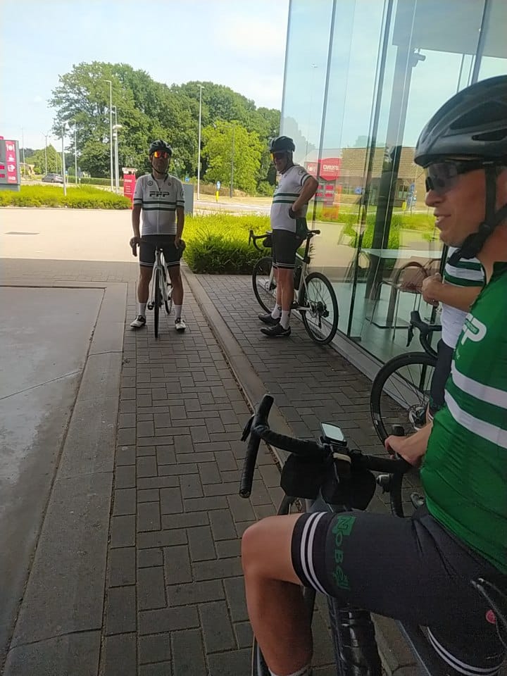Zaterdag 12 juli. Een heerlijke zomerdag om er weer eens wat langer op uit te trekken. Stipt 8u00 stonden we met 10 kleppers klaar aan het 8ste sacrament. Vol goesting trokken we weer de baan op. Rustig opwarmend met een zachte rugwind kwamen we toch weer mooie, nieuwe paden tegen. Nieuwe paden waar de één al wat meer last had om de juiste weg te vinden dan de ander. Al werd snel duidelijk dat er op magische wijze verschillende routes werden gedownload. Ter hoogte van Bokrijk zijn Marc en Kris, wiens lichaam toch nog wat moest bekomen van zijn Rometripje, met een ommetje terug huiswaarts gekeerd. Waardoor de kopbeurten van de overige 8 mekaar iets sneller opvolgden. Geen probleem voor de voorzitter, die met een duidelijk voedingsplan onderweg was. Een plan dat hij op 1 snoepje na minutieus heeft opgevolgd. Met superbenen als gevolg. Een voedingsschema waardoor hij zijne spaghetti er met veel moeite binnen kreeg in het ‘ t Velohofke. Een fijne locatie overigens voor onze tussenstop. Voor ieder wat wils. Lekker gegeten, tussen de beestjes. Vriendelijke bediening met ijsblokjes in ons drinkbussen. En voor de liefhebbers een bikewash ter beschikking. Met nog een 80km voor de boeg dan maar terug het glooiende landschap in richting Pelt. Genietend van de streek, en toch ook een beetje afzien van de heuveltjes voor sommigen onder ons, werd snel duidelijk wie de betere benen had. Benen die maar wat graag een extra kopbeurt voor hun rekening namen. Waarvoor dank. Eens terug aan Het 8ste Sacrament mochten we weer gezellig genieten van een hapje en drankje op terras waar de zon ondertussen ook helemaal was doorgebroken. Merci voor de fijne rit kleppers. En Merci voor de versnaperingen en het organiseren aan het bestuur. Een dankbare, voldane Klepper.