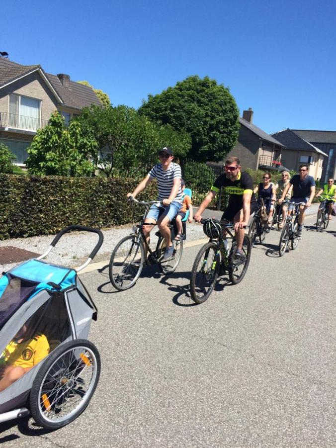 Op 29 juni was het zover; onder een verzengende tropische hitte trokken de kleppers in de vroege namiddag met hun kroost naar de mooiste plekjes in Pelt vergezeld van hun stalen ros. We zijn ten slotte een fietsclub. Een fietstocht is natuurlijk niet zonder risico, achter elke hoek kan er wel gevaar schuilen, daarom werd de tocht deskundige begeleid door 2 gele hesjes, die op regelmatige basis een meikever of een processierups neerknuppelden.