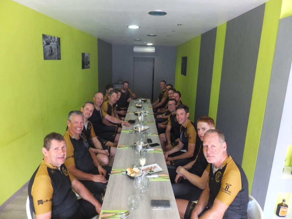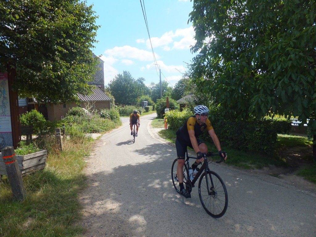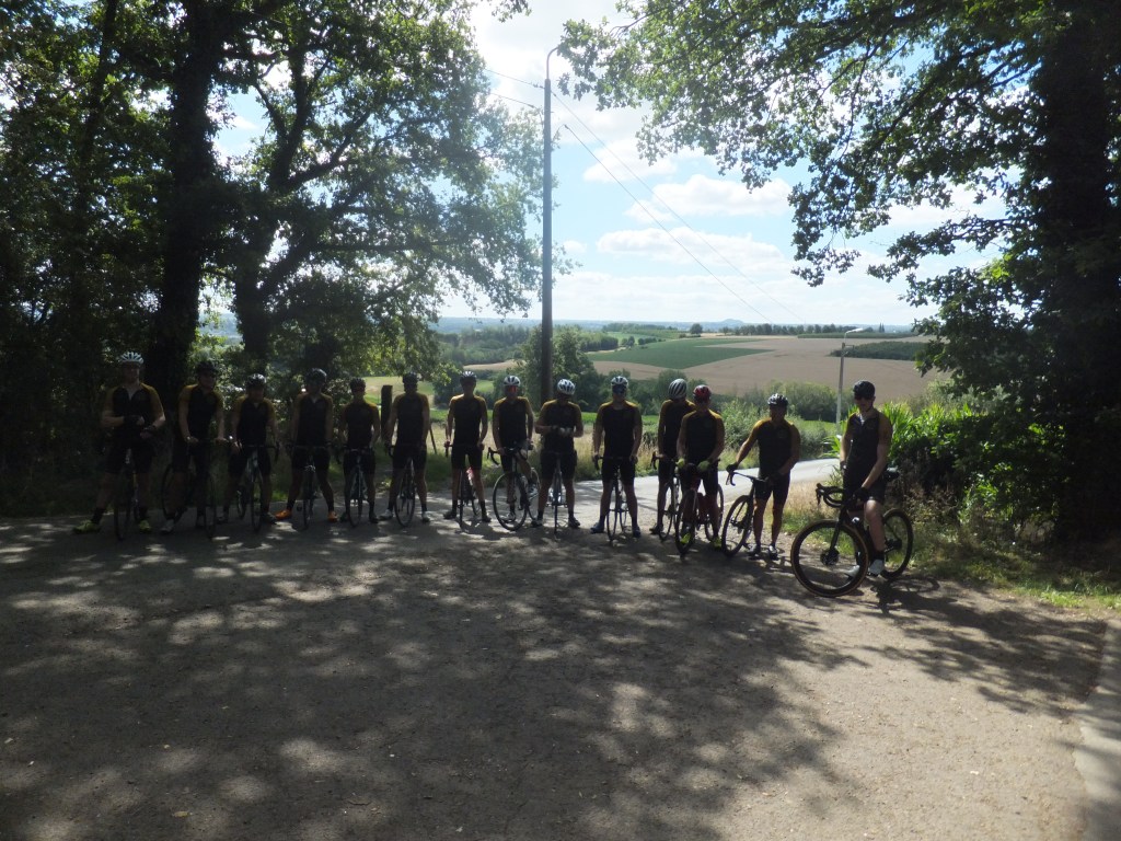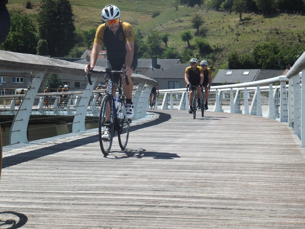 21 Juli, deze datum stond bij vele Kleppers vetgedrukt in de agenda. Door het wegvallen van verschillende toertochten was dit het moment om de benen een keer testen. Zoals steeds, verzamelen aan het Achtste Sacrament. Klokslag 08.30u, na opzwepende en respectvolle woorden (lees: zand strooien) van de voorzitter trekt het peloton van 16 Kleppers zich op gang. Zoals het een echte koninginnenrit betaamt, rijden we zuidwaarts, richting glooiend terrein. De sfeer, het weer en de wind zijn ons in het eerste gedeelte gunstig gezind. Het gaat in een mooi gestaag tempo richting Zutendaal om daarna het glooiende Riemst binnen te rijden. Hier en daar worden voorzichtig de eerste versnellingen geplaatst. De lockdown heeft voor een ongezien vormpeil gezorgd bij alle Kleppers waardoor deze eenvoudig worden verteerd. Na Riemst, het echte werk, het tweeluik Hallembaye – Oude Hallembaye, wat zoveel betekent als alle registers open. Dus…Trein op de rails en gaan. Hier en daar wordt er onderling een duel uitgevochten en sommige duelleren met zichzelf. Al bij al, geen noemenswaardige schade, dus maar door richting Oupeye waar een lekkere pasta op ons wacht. Na de pauze en de nodige flauwe zever zetten we ditmaal koers richting Noorden, met de wind tussen de wenkbrauwen en nog enkele klimmetjes in het verschiet. Net voor de laatste kuitenbijter, een zeldzame lekke band, dit keer voor onze wegkapitein van de dag, JC (in het milieu ook wel gekend onder de naam ‘Il Capo’). Na de vlotte bandenwissel moeten we onmiddellijk aan de bak, want de Muizenberg torent plots voor ons op. Met percentages tot 10 %, de ideale speeltuin voor Neo-Klepper K. Kums aka K. Koms. Boven aangekomen op deze puist beginnen de eerste tekenen van vermoeidheid op te spelen. Maar, geen nood, de sfeer zit nog steeds optimaal en als een volleerd peloton banen we ons een weg richting Pelt waar er ons nog een hapje en drankje te wachten staat. Rustig keuvelend en lachend rijden we Pelt binnen, niet wetende wat ons te wachten staat. De laatste demarrage op de Breugelweg, ditmaal uit onverwachte hoek. Zonder namen te noemen trekt dit Vlaams Brabants trekpaard alles op een lint en etaleert zijn uitstekende conditie (het geheime recept, kunstgras). Daarna rijden we rustig het centrum binnen om onze dorst te laven, honger te stillen en na te kaarten op het terras van het Achtste. Samengevat, wat een topdag! Dank aan allen die er bij waren en dit mogelijk hebben gemaakt.