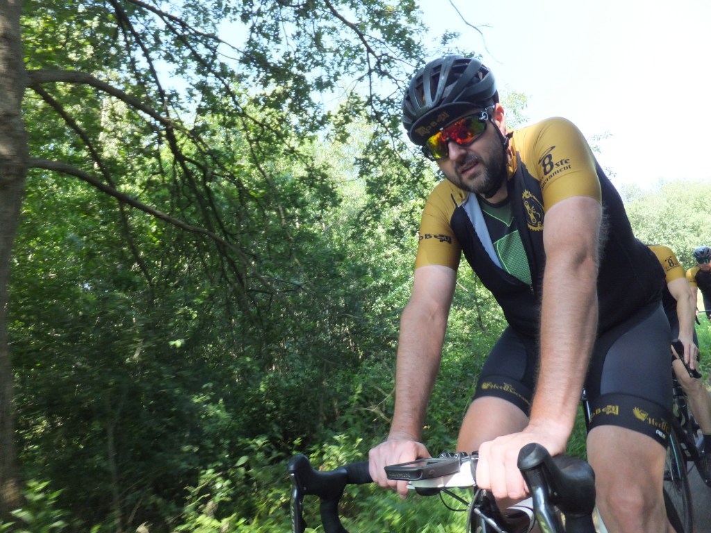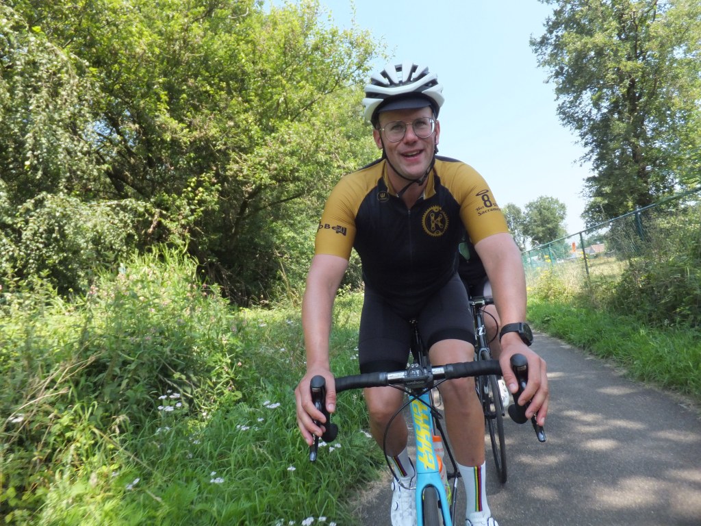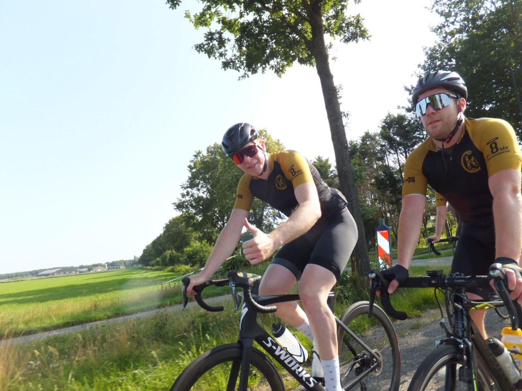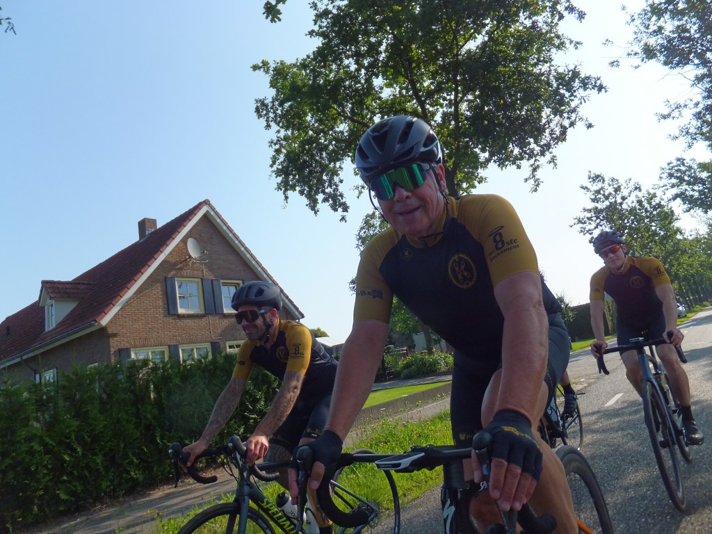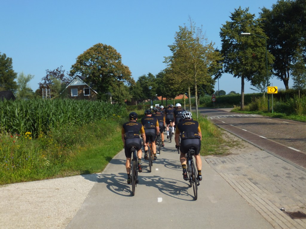 Om 8u werd de rit door de voorzitter opgang getrokken. Met een opbouwend tempo gingen we richting de nederlandse grens. De weersomstandigheden waren subliem. Men kon geen beter weer wensen voor deze mooie dag. Na 60km werd de eerste plaspauze ingelast, waarbij we ook direct hulp hebben aangeboden aan 2 fietsers met pech. Direct ging het tempo terug de hoogte in, want we reden richting de bakker in Meensel-Dreef om onze eerste honger te stillen. Iedereen kon genieten van een stuk taart. Voor elk wat wils! Enkel voor Beton Baron was de honger nog niet gestilt… Hij heeft dit opgelost door een extra worstenbroodje binnen te spelen.
