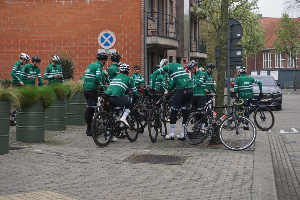 Een kleine 30 Kleppers verzamelden zich om 9u bij het clublokaal annex stamkroeg Het 8ste Sacrament. De laatste zaterdag van maart was reeds enkele maanden met rood omcirkeld in diverse agenda’s. Deze dag konden alle Kleppers hun nieuwe tenue showen, een groen witte uitrusting met het logo van FFP, Flanders Food Productions onze nieuwe partner voor de komende 4 jaar, prominent aanwezig.