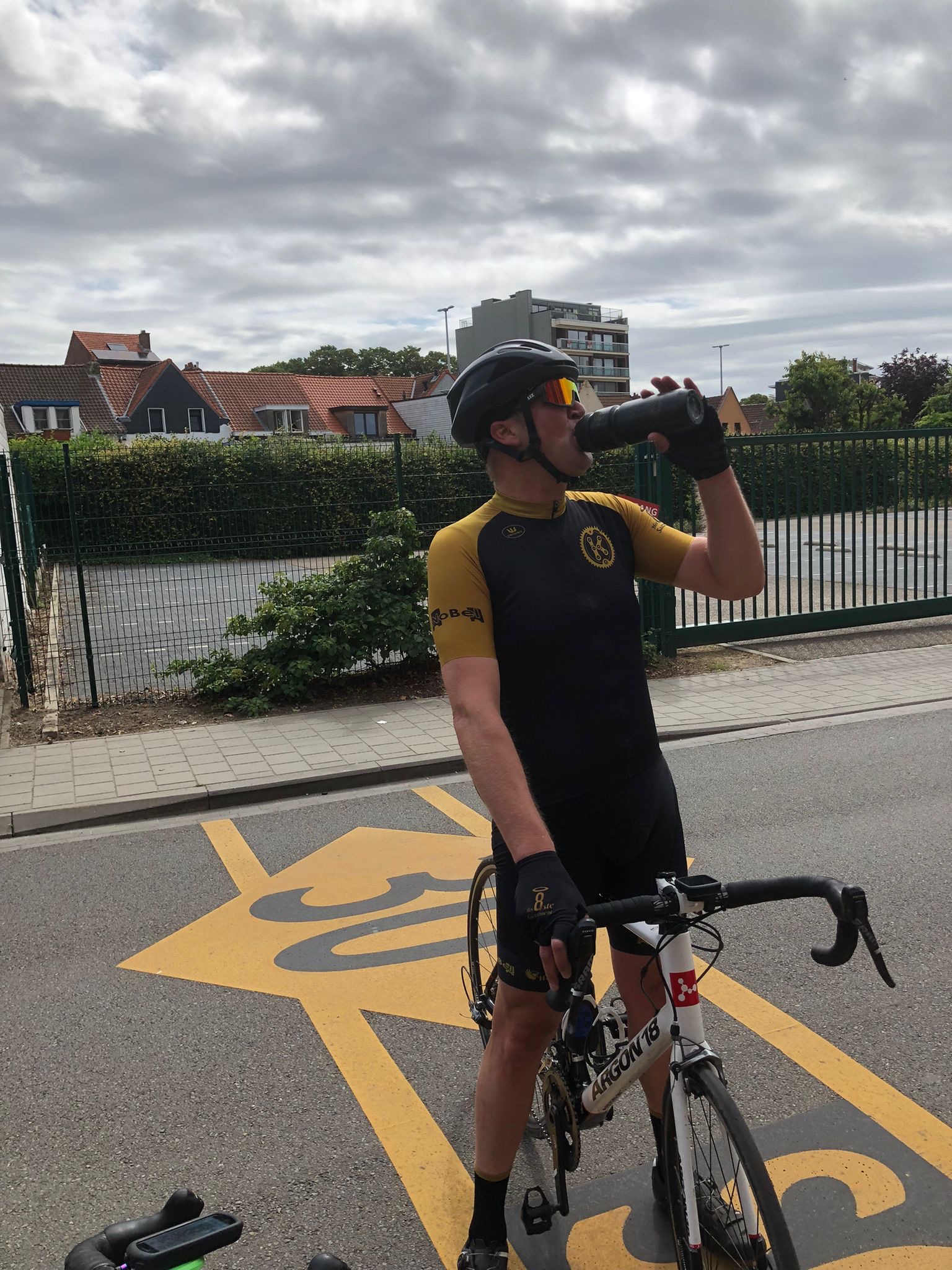 Op 38km kwam er een samensmelting voorin, en werd de rit verdergezet richting La Houppe. Hierboven even stoppen voor een paar cola’s en de drinkbussen te vullen. Volgende stop lag op 90km. Hier hebben we nog met z’n alle gekeken naar de start van de Super 8 classis. Na deze doortocht kon de eerste groep terug verder en kwam de 2de groep juist aan op de stop. Naarmate de rit vorderde werd de strijd harder. Een wijs man vertelde mij ooit volgende gouden regel: eraf is eraf. En met deze quote moet ik geen tekening maken bij het verdere verloop van de rit.