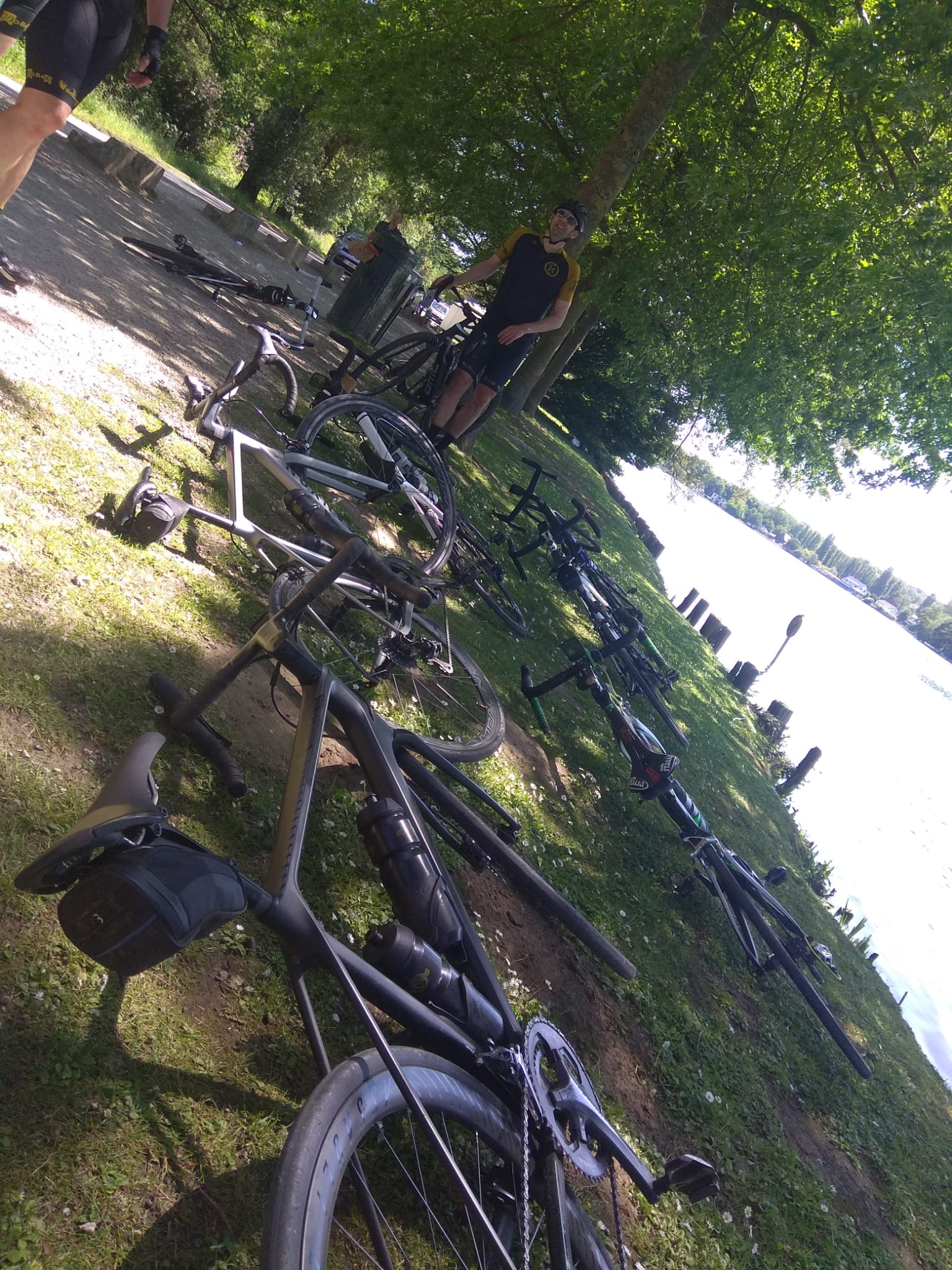 Gelukkig hadden we al wat bagage van vrijdag en zaterdag. Banden werden niet enkel vervangen (al deed Joris wel een gooi naar de platte banden trofee met zijn 7 platte banden in een rit), ze werden ook gesterkt. Ornithologen in de groep deelden graag hun kennis. Reigers, valken, rooie wauw en zelfs een visarend werden gespot. En Werner zag het weer helemaal zitten toen hij een aantal herten het pad zag over steken. Geluk zit hem in de kleine dingen eh.