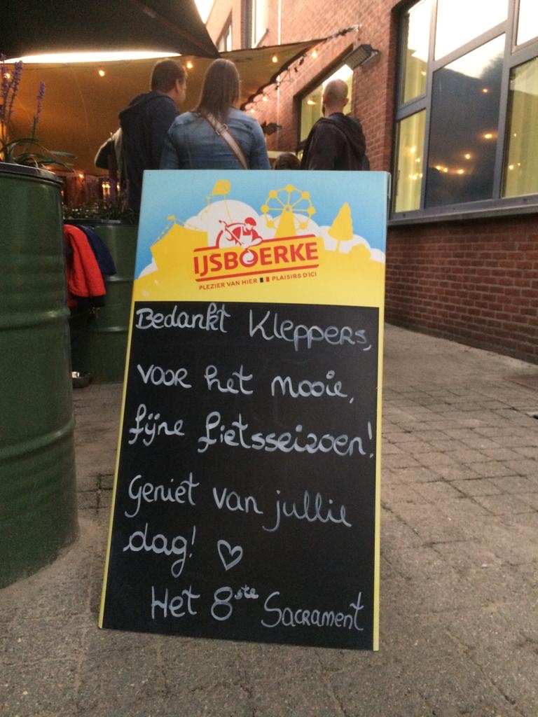 Na een tochtje van 68 kilometer waar ieder weer tijd kon maken voor elkander, interesse kon tonen in elkaar, hier en daar werd er zelfs een knuffel uitgedeeld, bereikten we onder een positief gesternte Het 8ste Sacrament.