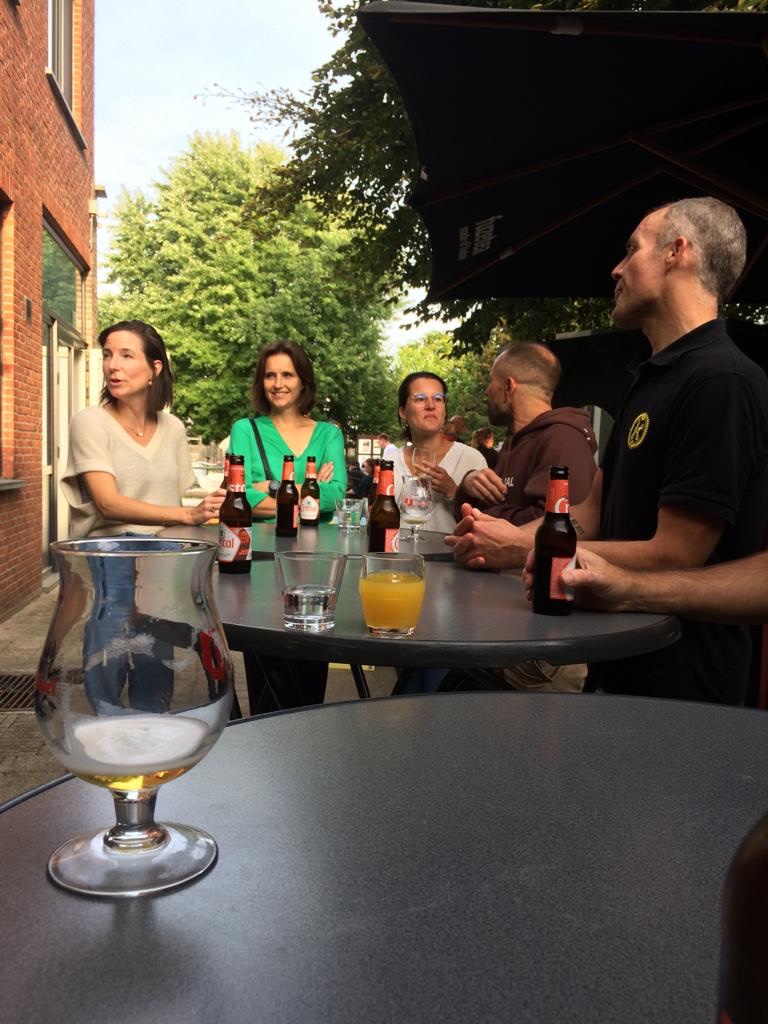 De trein werd weer op gang getrokken en de eindbestemming kwam met rasse schreden dichterbij. Eens we het fietspad in Zonhoven opdraaide was het voor iedereen duidelijk dat het een kwestie van binnenkomen was en dat we van een welverdiende verkoeling konden genieten op het terras van Het 8ste Sacrament. Wij allen waren het erover eens dat het goede organisatorische werk weer geleid heeft tot een mooie dag met mooie herinneringen.